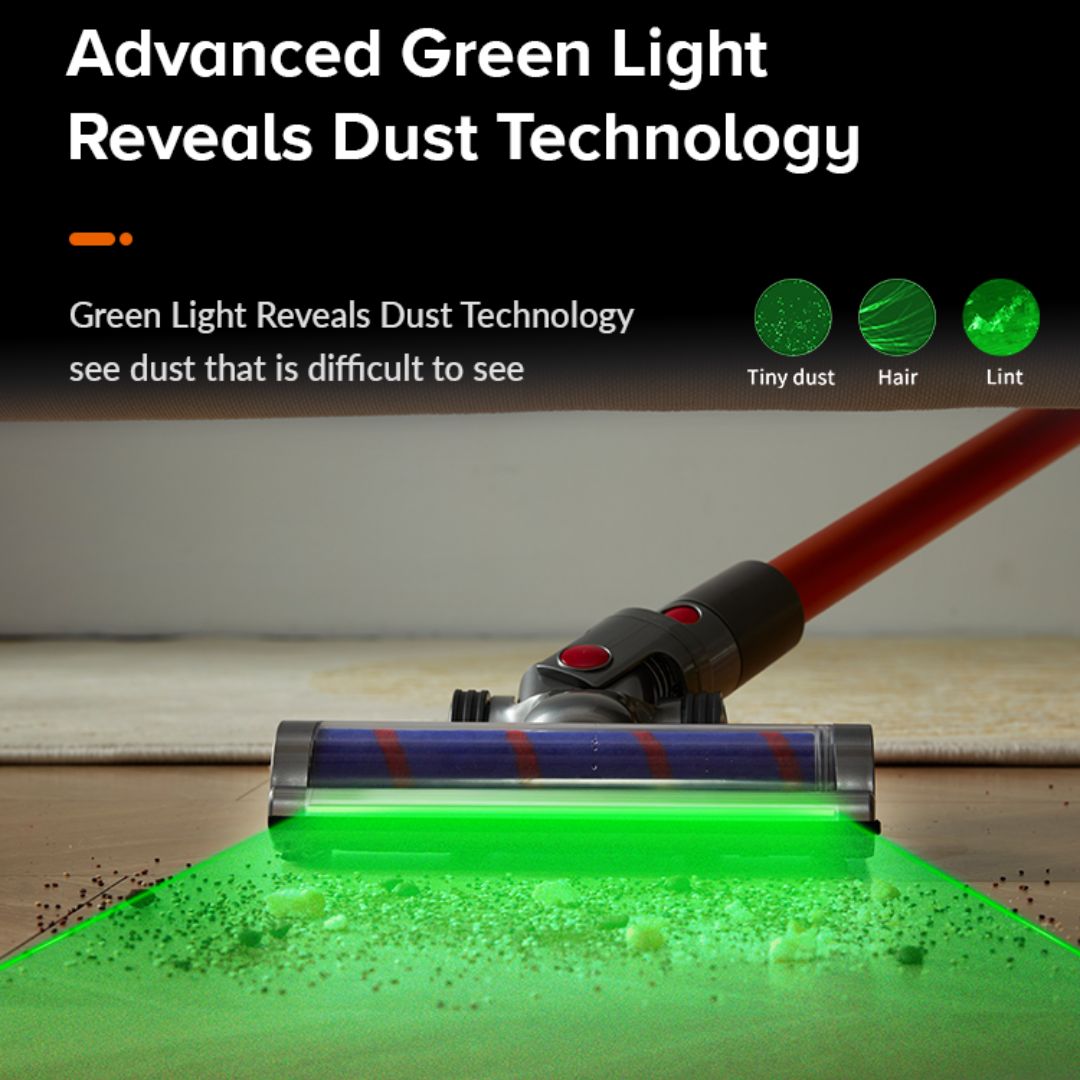 Say goodbye to hidden dust and allergens with Smart Auto-Power Mode, 27,000Pa max suction, and Wide-Angle Laser Dust Detection that reaches every corner and gap. With washable E13 HEPA filtration, a large dust cup, and versatile attachments, it delivers a deep, thorough clean on floors, furniture, and even car interiors — keeping your home spotless and healthy.