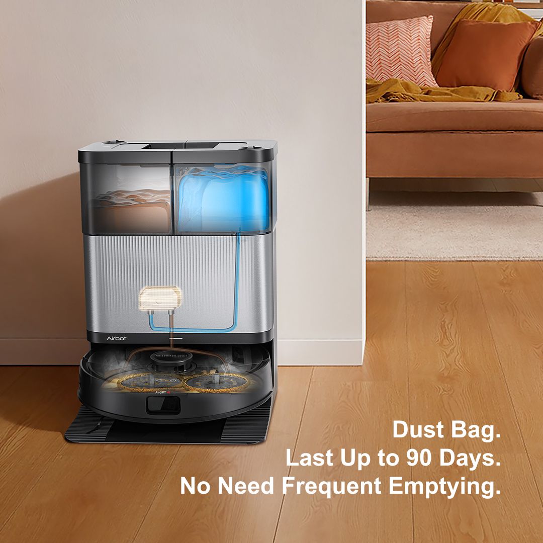 Experience effortless cleaning with the Airbot X50, featuring 24,000Pa Hyper Suction Power and the intelligent HyperARM™ Smart Mop System for deep cleaning under furniture and along edges. With AI Obstacle Avoidance and the HyperClean™ Dock Station, it automatically empties dust, hot-washes, and dries the mop for a truly seamless cleaning experience.